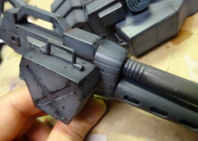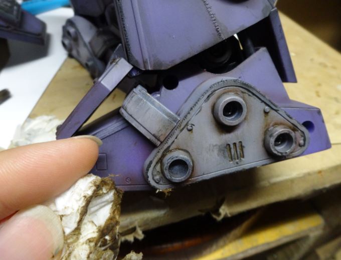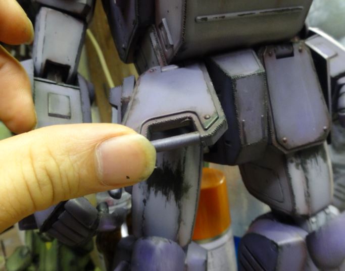 腕の肘関節の硬さが左右非対称なんでプラ板を内側に張り付けて摩擦で調整する。